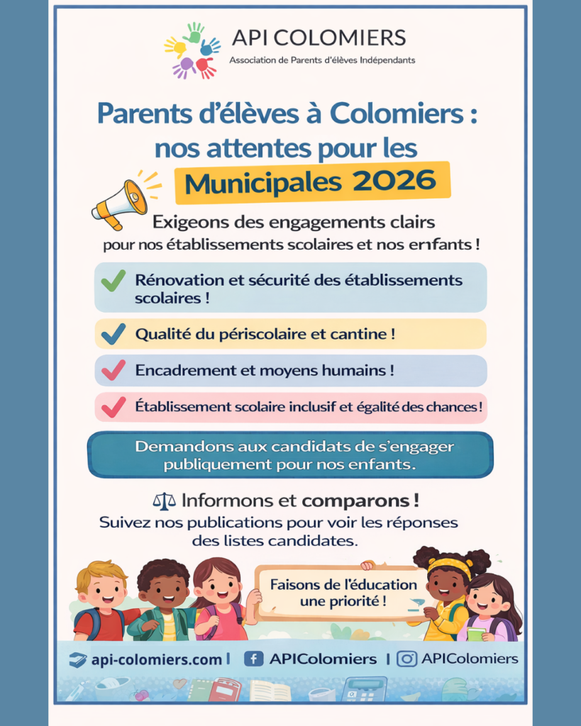 À l’approche des élections municipales de 2026, notre association a rédigé un Pacte éducatif pour porter la voix des familles et défendre une priorité essentielle :