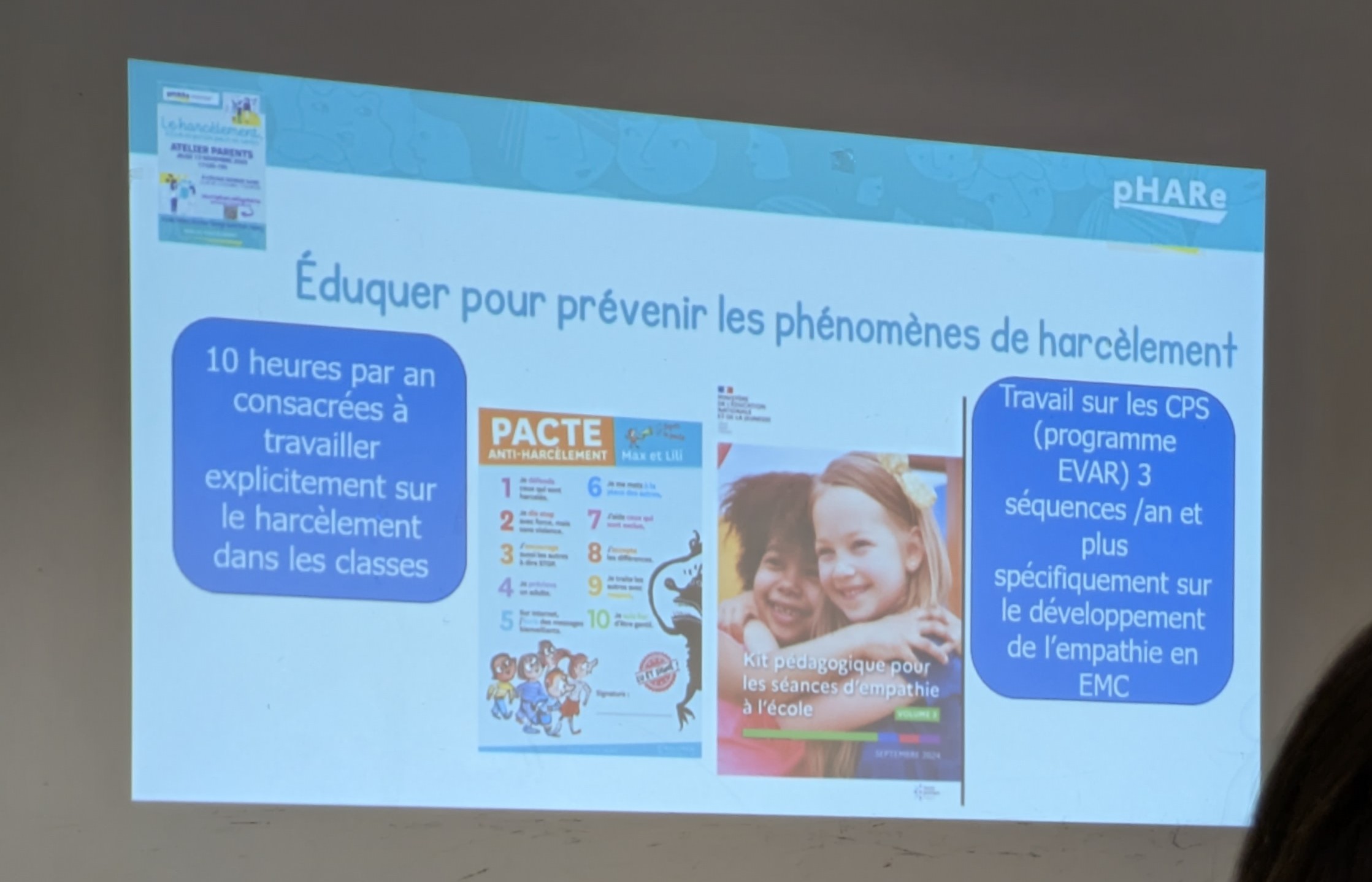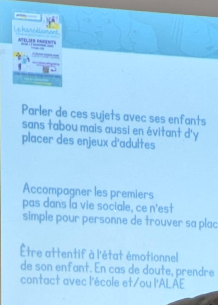 Jeudi dernier s’est tenue une réunion d’information sur le harcèlement, organisée par les écoles élémentaires Hélène Boucher, Alain Savary et George Sand. L’occasion pour la vingtaine de personnes présentes d’en savoir plus sur ce qu’est le harcèlement et sur les actions menées.