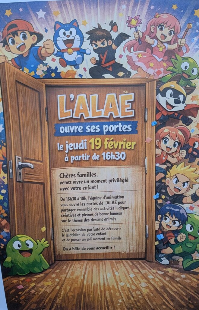 Avant les vacances de février, l’ALAE de notre école élémentaire vous offre une nouvelle opportunité de vivre un moment privilégié avec vos enfants.