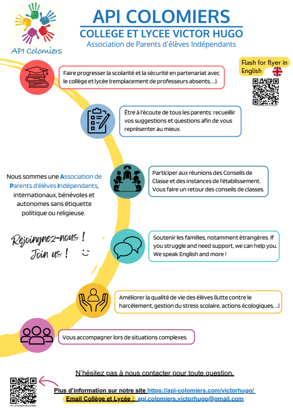 Vous souhaitez nous rejoindre ? Contactez nous sur api.colomiers.victorhugo@gmail.com !