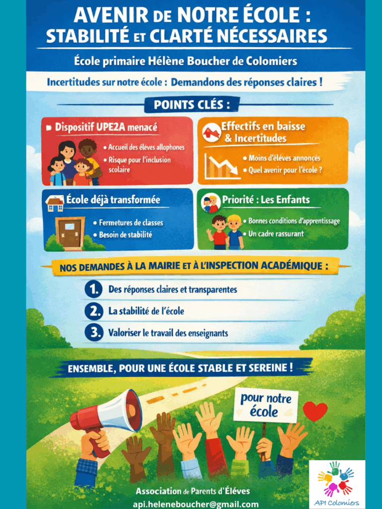 Nous invitons les parents à rester attentifs aux prochaines communications et à soutenir les démarches visant à préserver un environnement scolaire stable, serein et favorable à la réussite de tous les enfants.