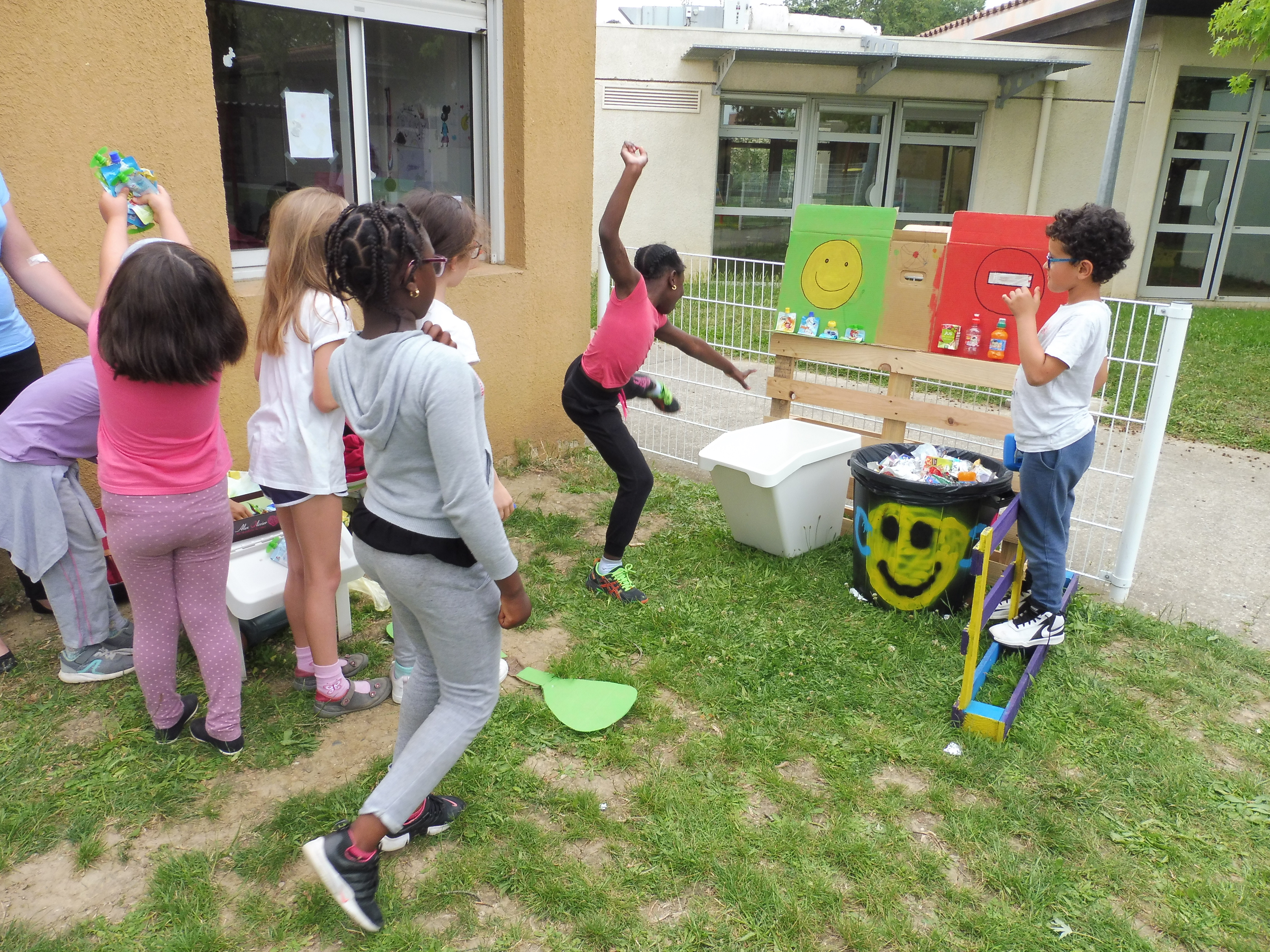 Cette semaine (lundi, mardi et jeudi), pendant le temps du goûter, dans l’espace dévolu pour les CP/CE, nous animons des jeux pour aider les enfants à mieux trier les déchets, et comprendre l’intérêt de la collecte des gourdes de compotes. Lancer de projectiles, chasse aux intrus, chasse au trésor sont au programme. Nul doute qu’à la fin de la semaine, les enfants ne se tromperont plus de poubelle, et pourront transmettre ces bons gestes dans leur entourage.