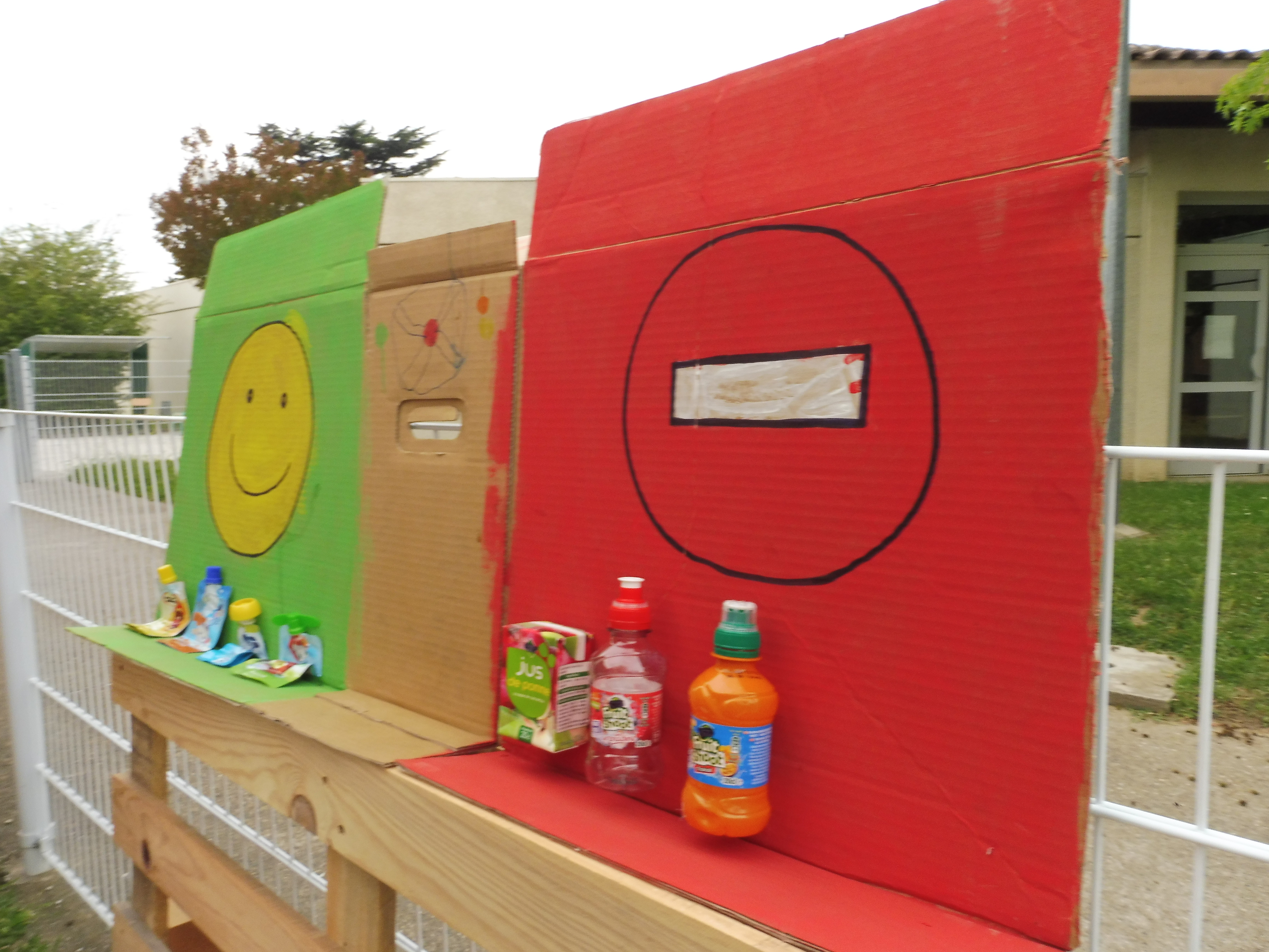 PS: vous aussi, à la maison, vous pouvez récupérer et apporter les gourdes vides: des bacs sont installés de façon permanente dans le hall de la maternelle.