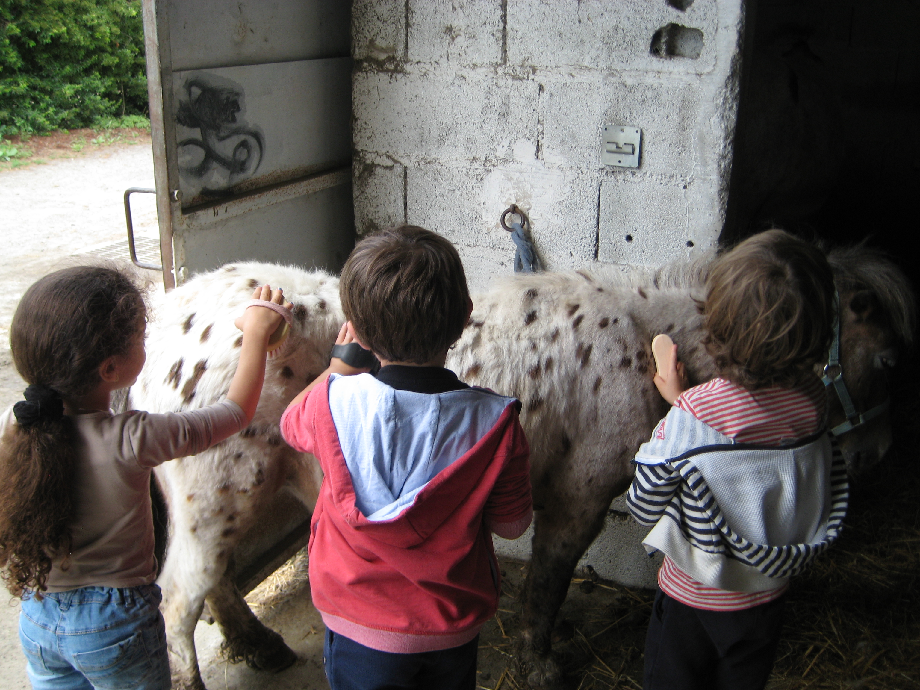 Marie et Patrick Caumont, les deux fermiers passionnés, ont permis aux enfants de nourrir de nombreux animaux : poules, dindons, moutons , âne, cochons, oies…
