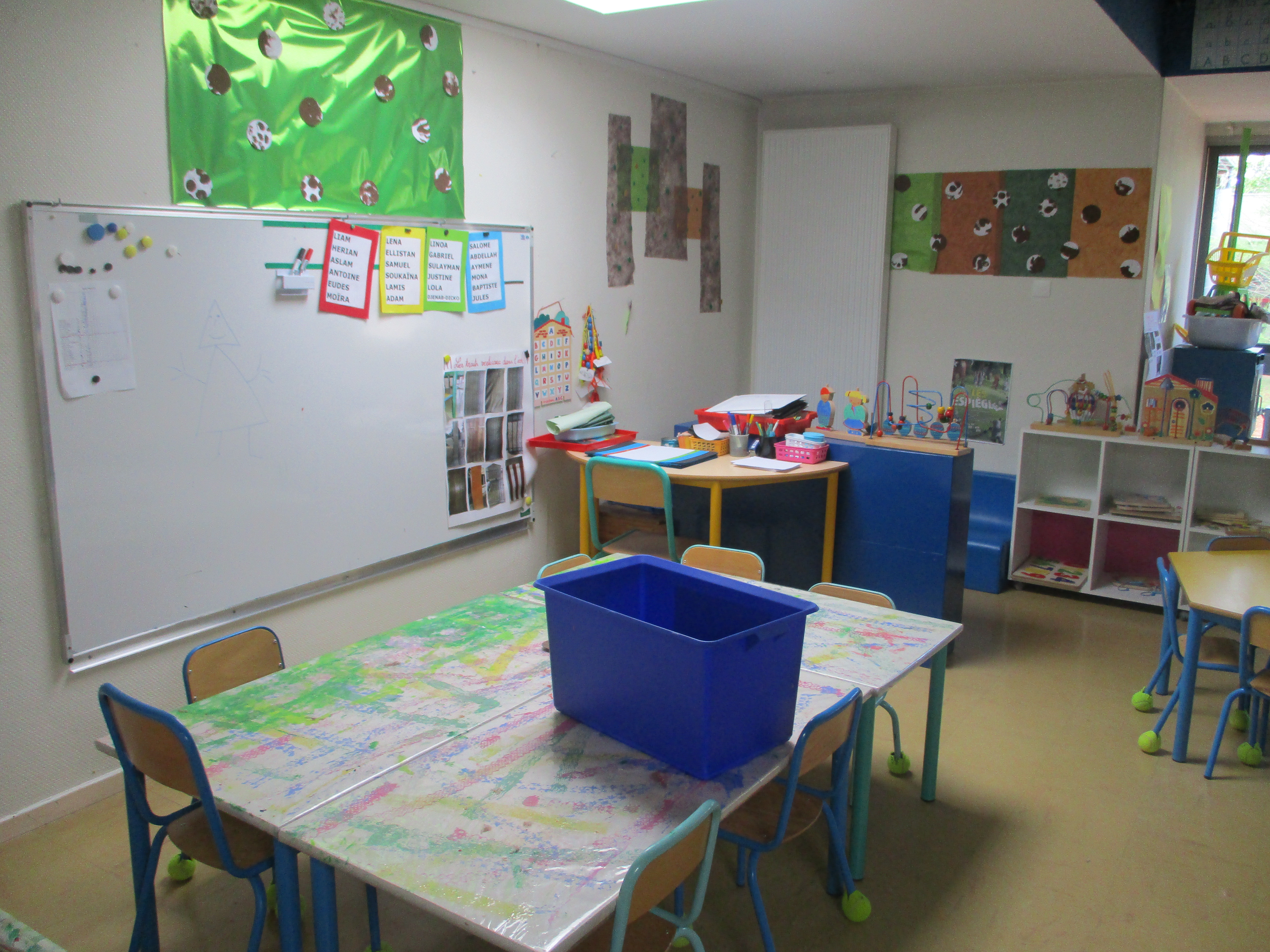 La table des ateliers de la classe bleue