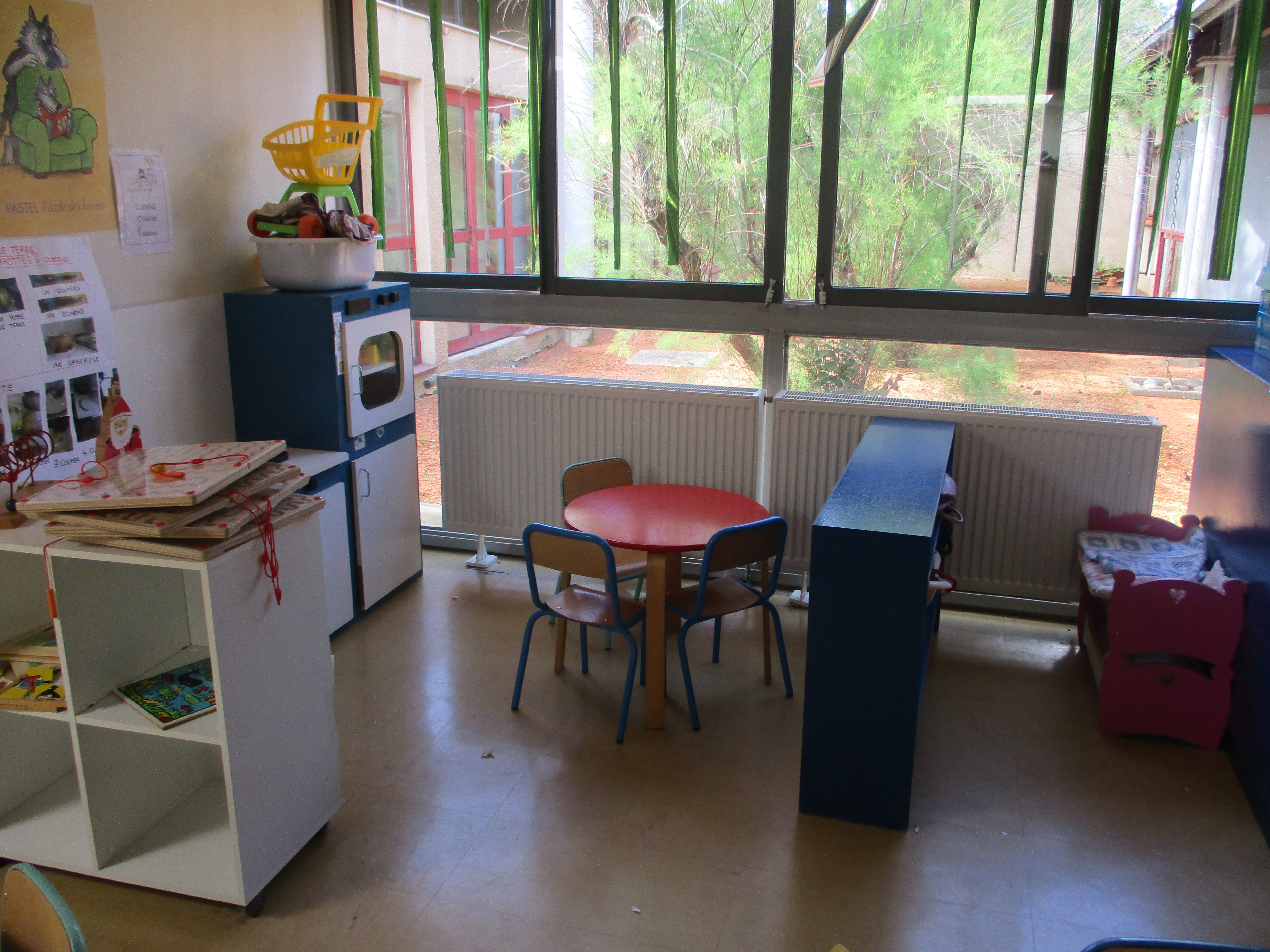 Coin dînette dans la classe bleue