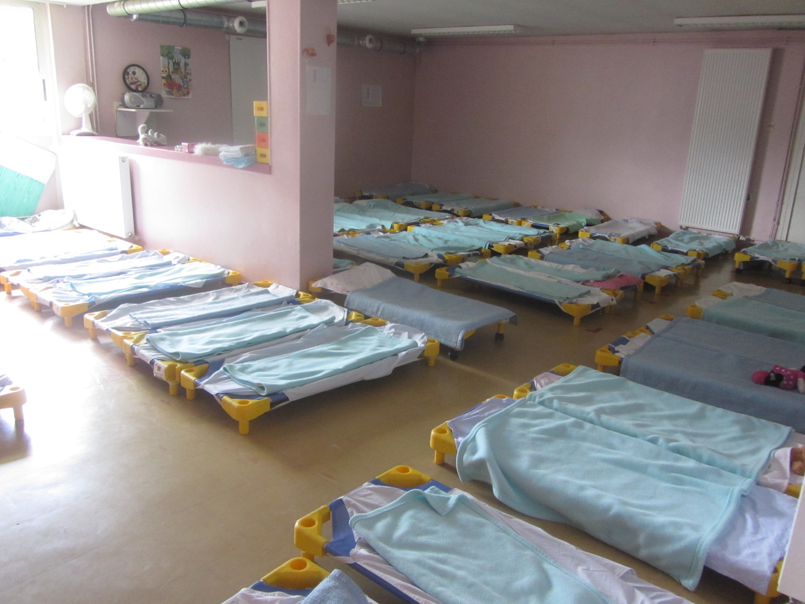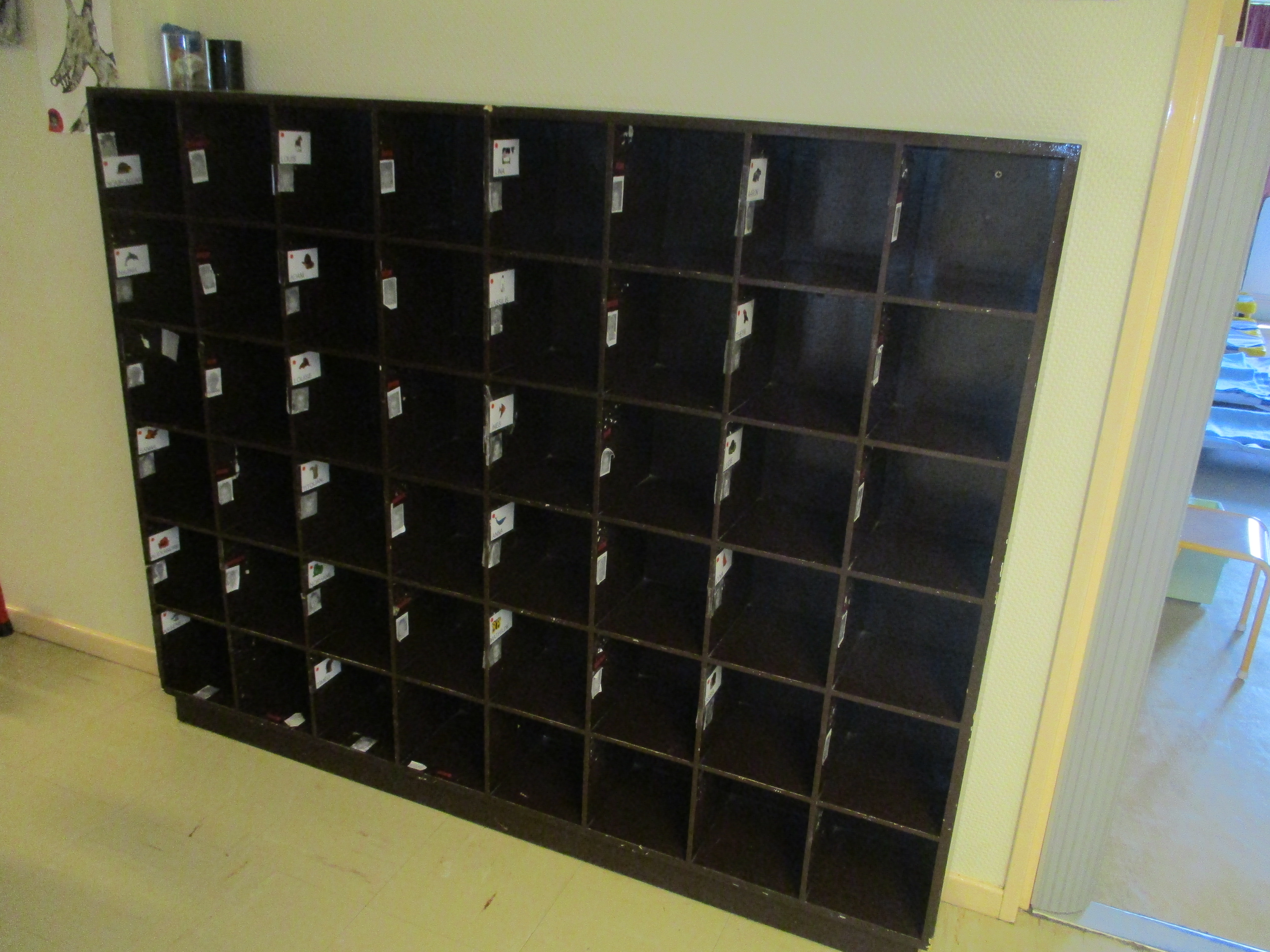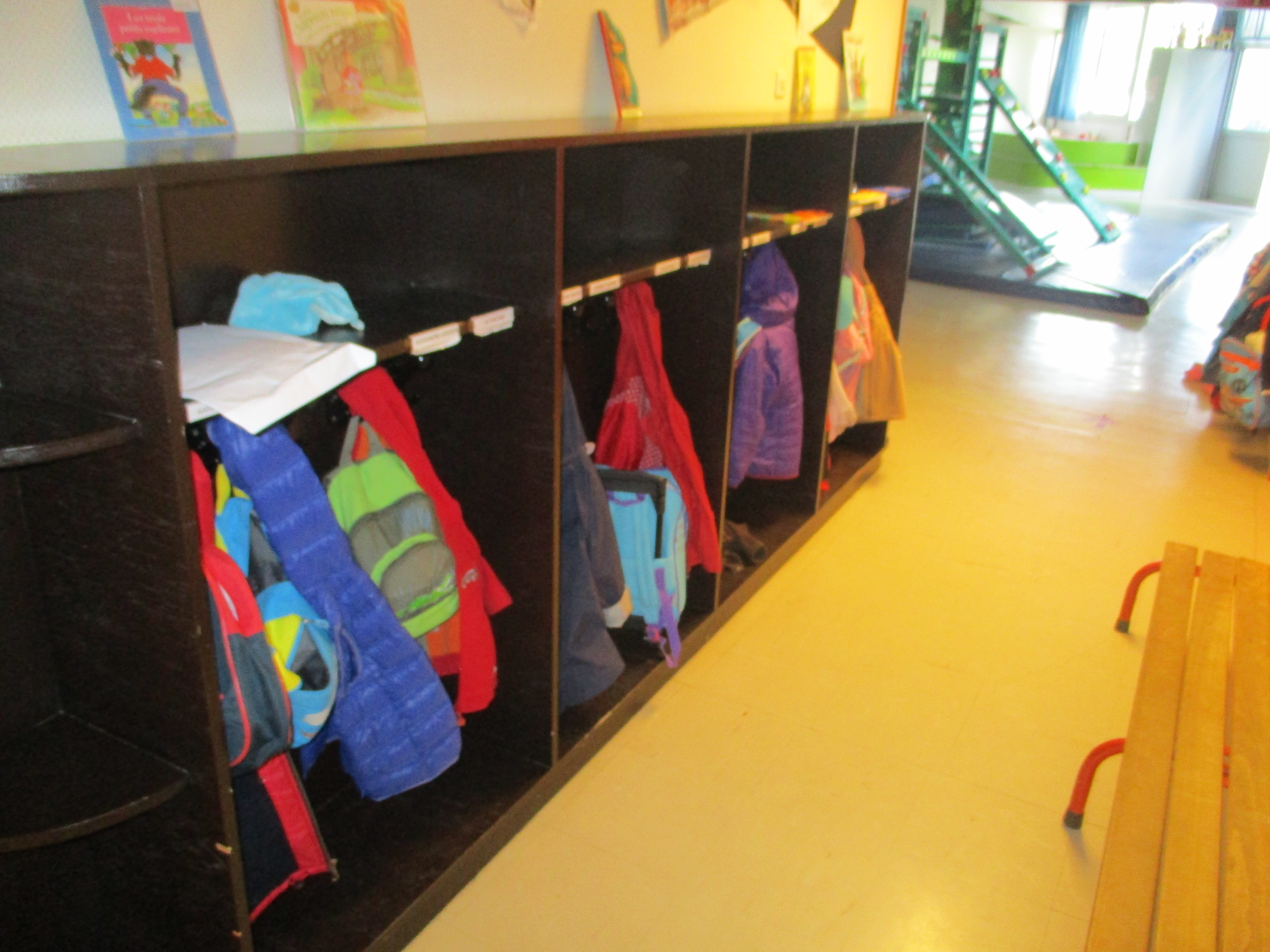 Les étagères pour déposer les doudous, en attendant la sieste