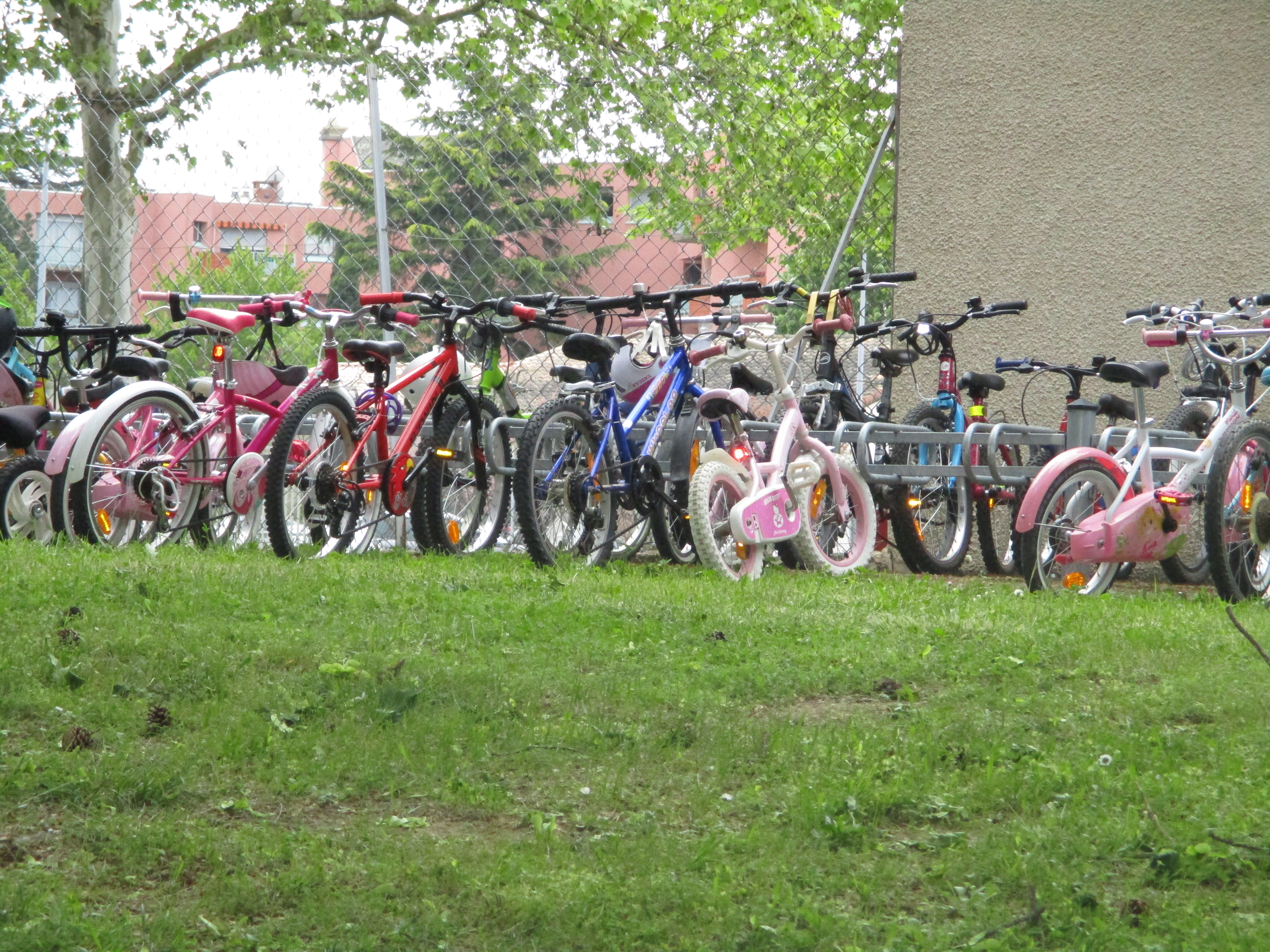Les beaux jours reviennent ! Tous les mardis et mercredis pendant plusieurs semaines, des dizaines de petits et grands vélos occuperont la pelouse à côté de la cour des CP.