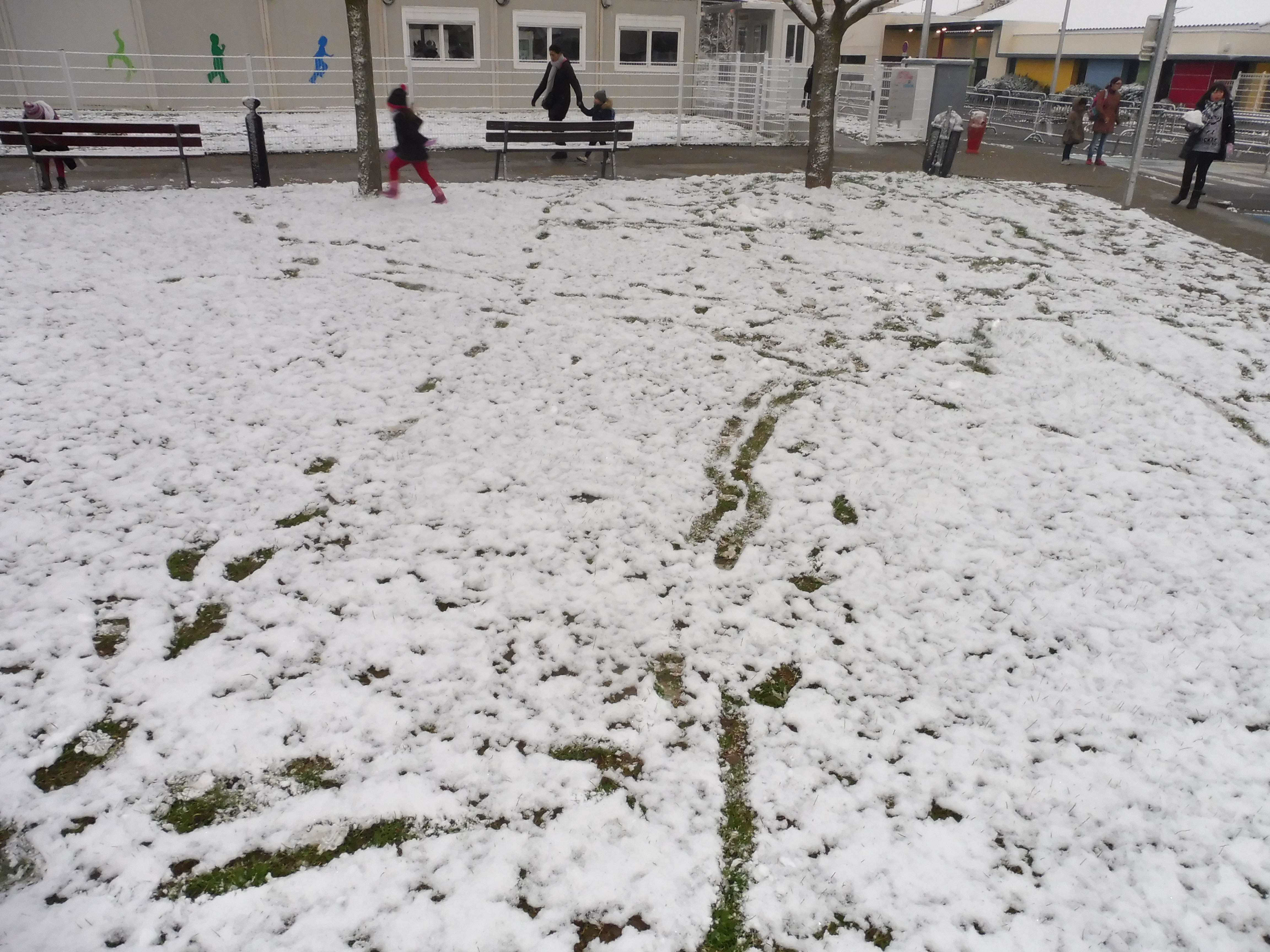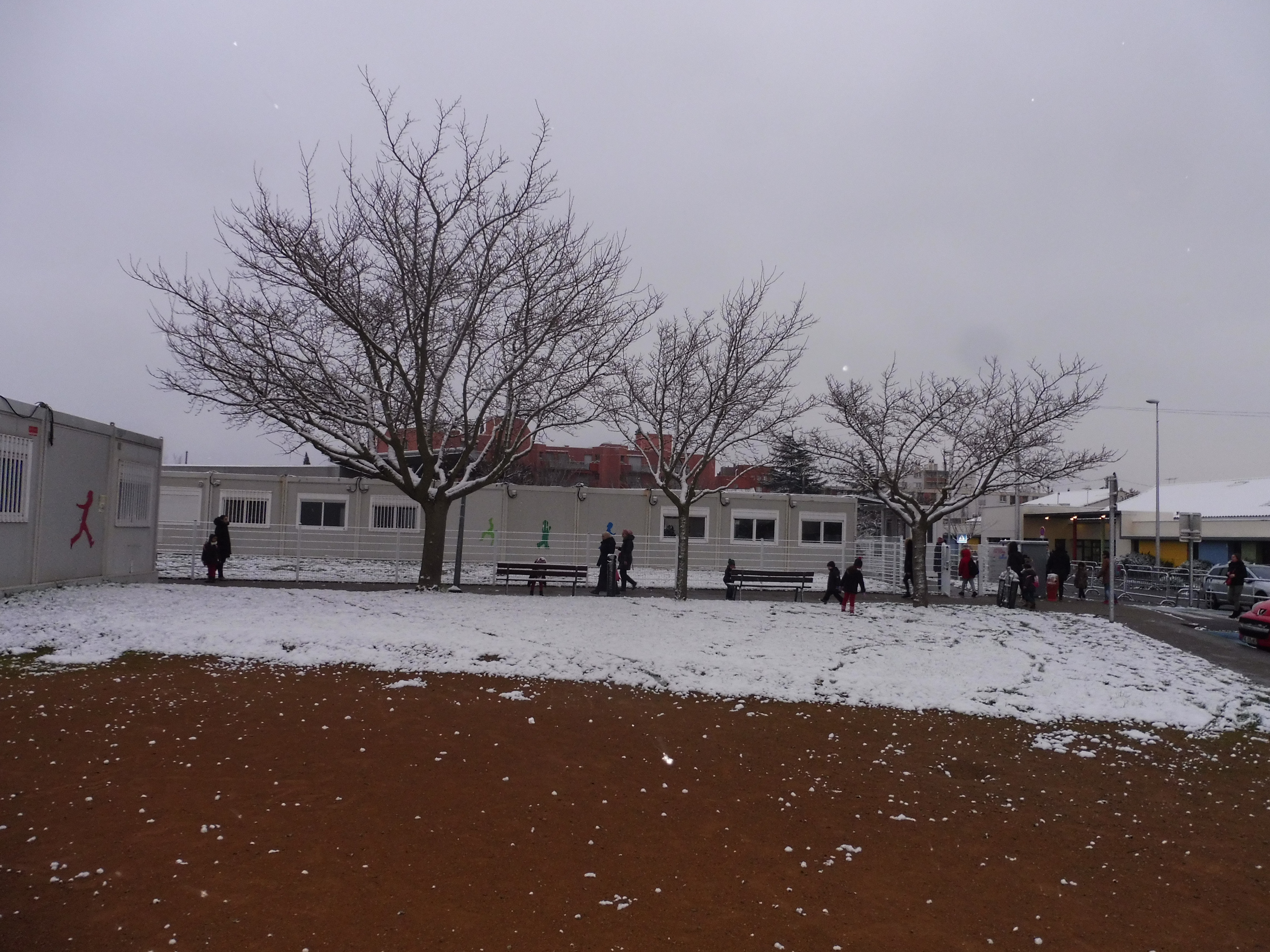 En maternelle, les maîtresses ont permis aux élèves de profiter en début de matinée de la fine couche déposée dans la cour.